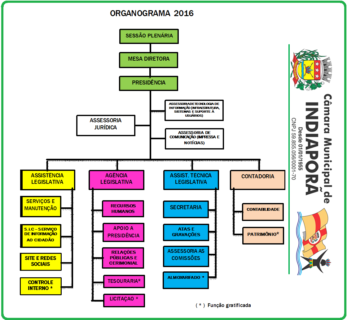Departamentos organizacional da Câmara Municipal de Indiaporã,
